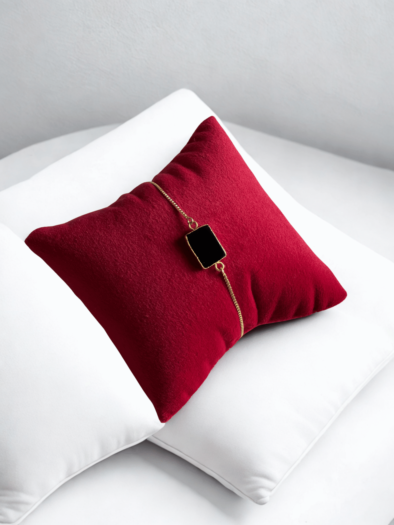 Minimal bracelet with a bold square black onyx charm at the center, radiating strength and elegance.