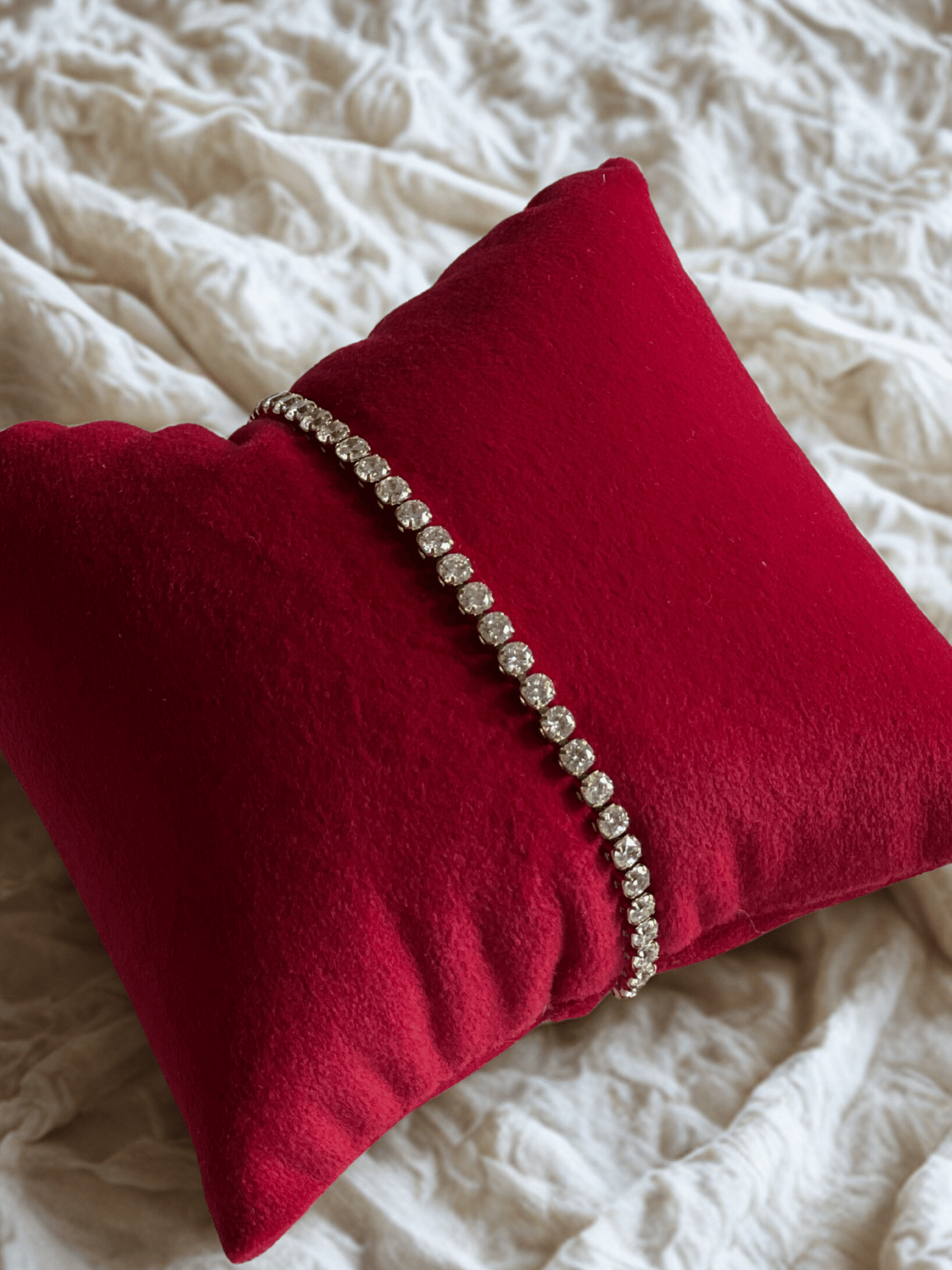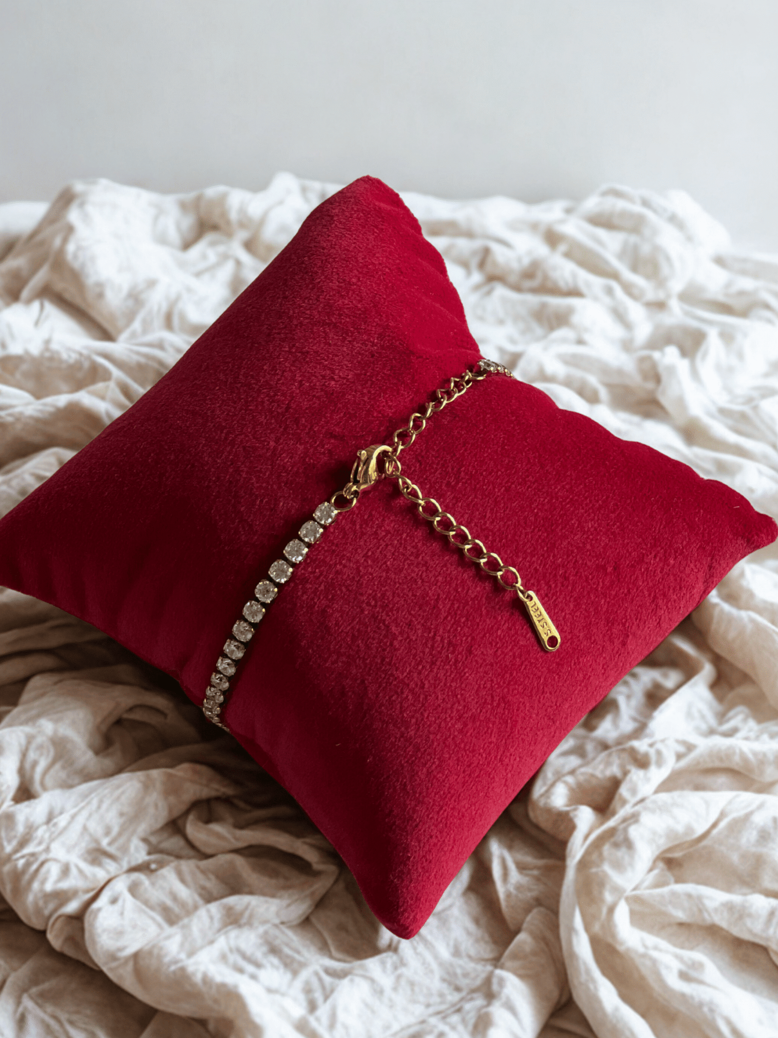 Traditional tennis bracelet with a continuous line of shimmering zirconia stones.