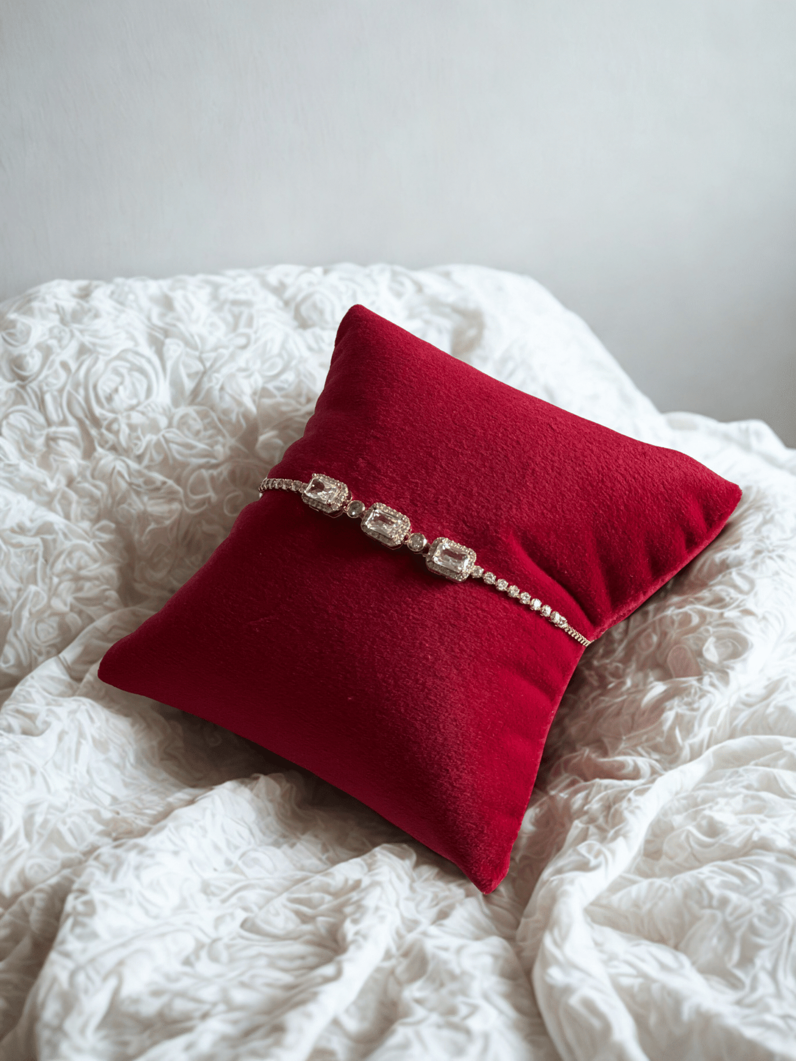 • Avoid direct contact with perfumes, lotions, and sprays to preserve the plating and gemstone shine.