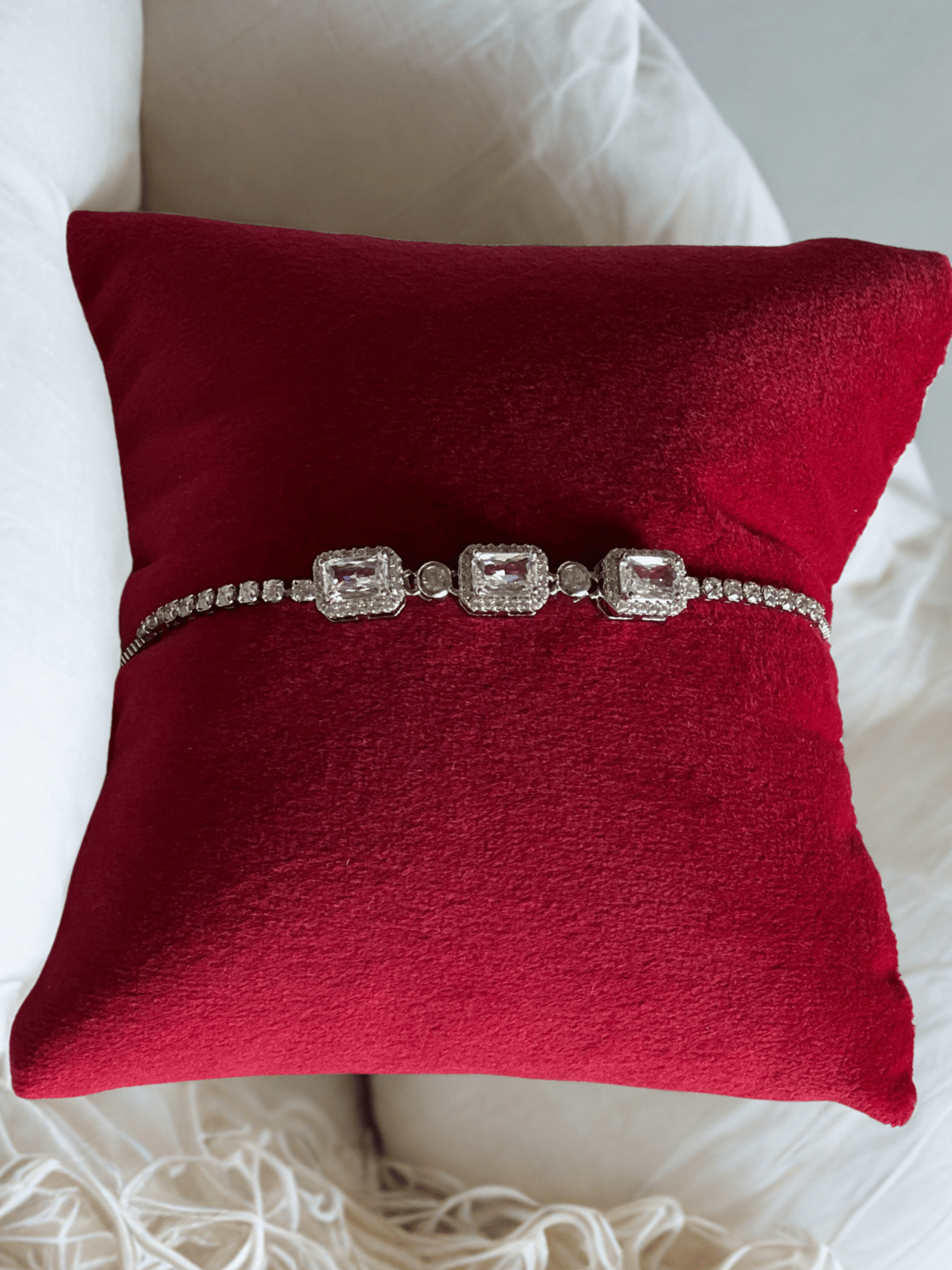 - Avoid direct contact with perfumes, lotions, and sprays to preserve the plating and gemstone shine.
