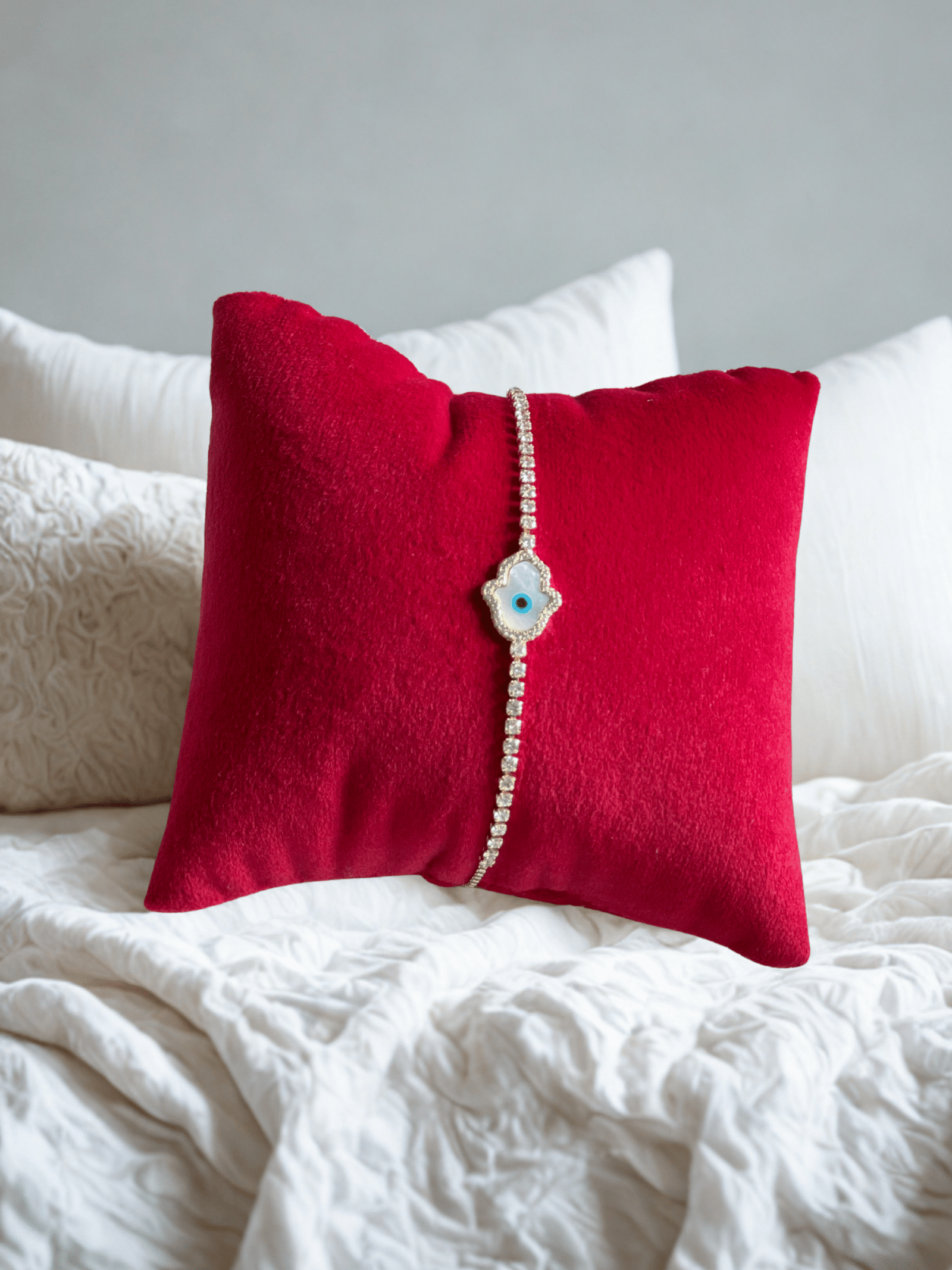 A delicate bracelet with the iconic evil eye charm, believed to ward off negativity while adding a chic modern touch.