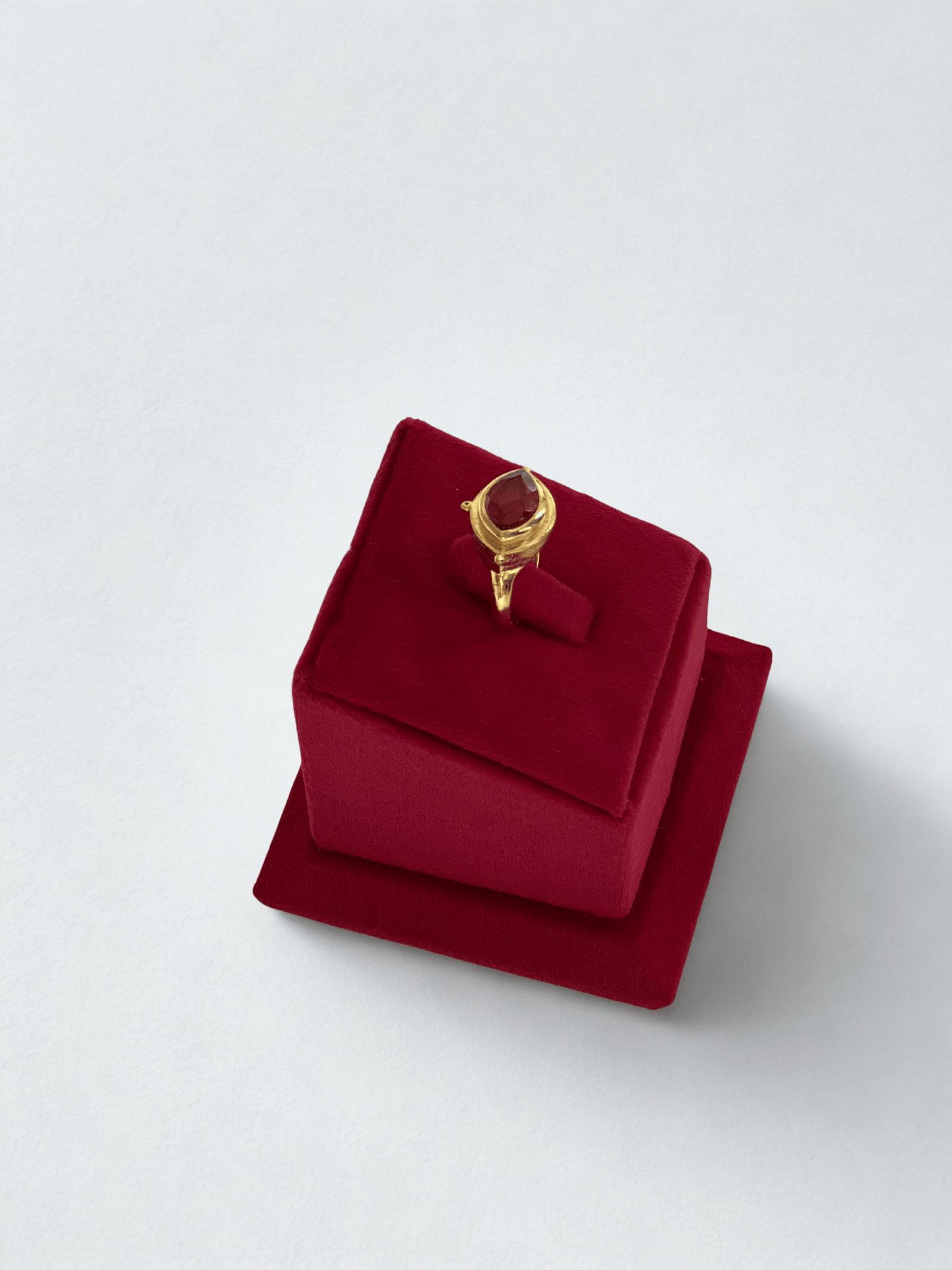 Available in two captivating stone variations – Green Amethyst and Pink Fuchsia Quartz. Designed with a bold marquise cut and set in a sleek gold-plated band, this ring makes an elegant statement while carrying deep meaning.