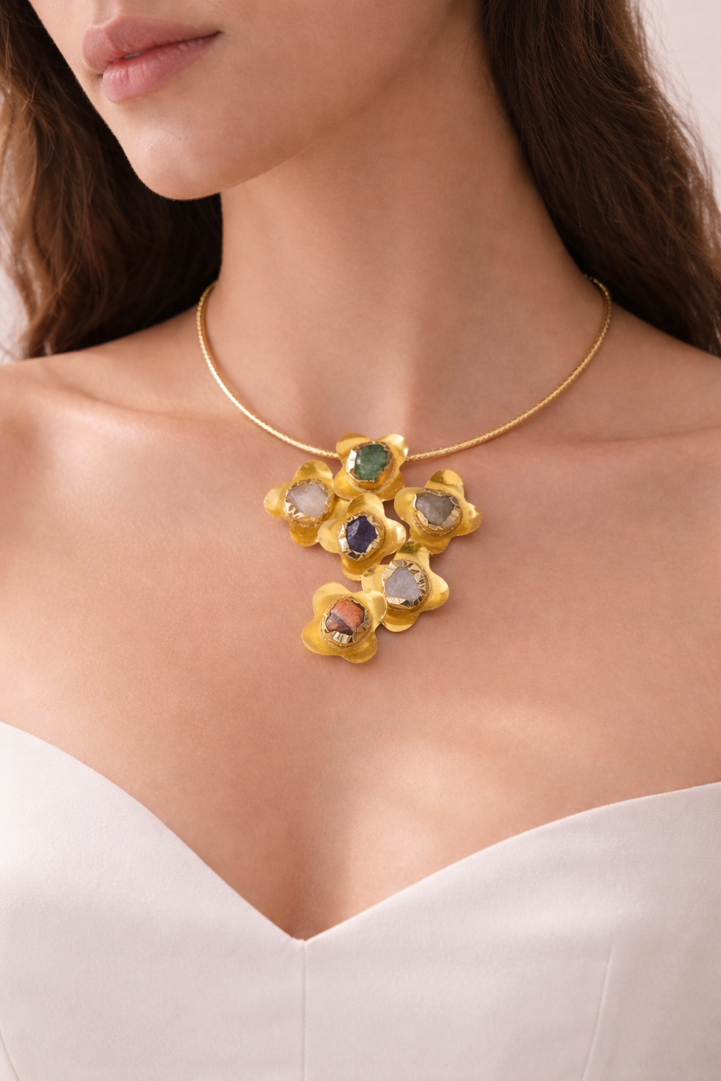 Bold yet graceful, the Floral Multi-Stone Statement Necklace is a celebration of artistry and elegance.