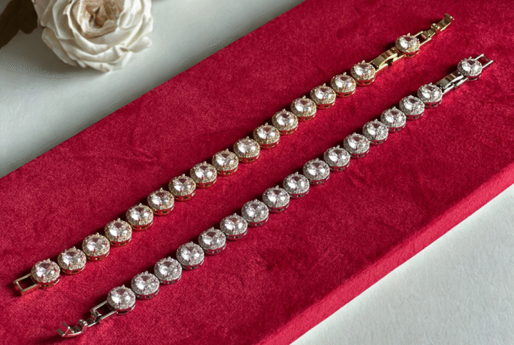 - Avoid direct contact with perfumes, lotions, and sprays to preserve the plating and gemstone shine.
