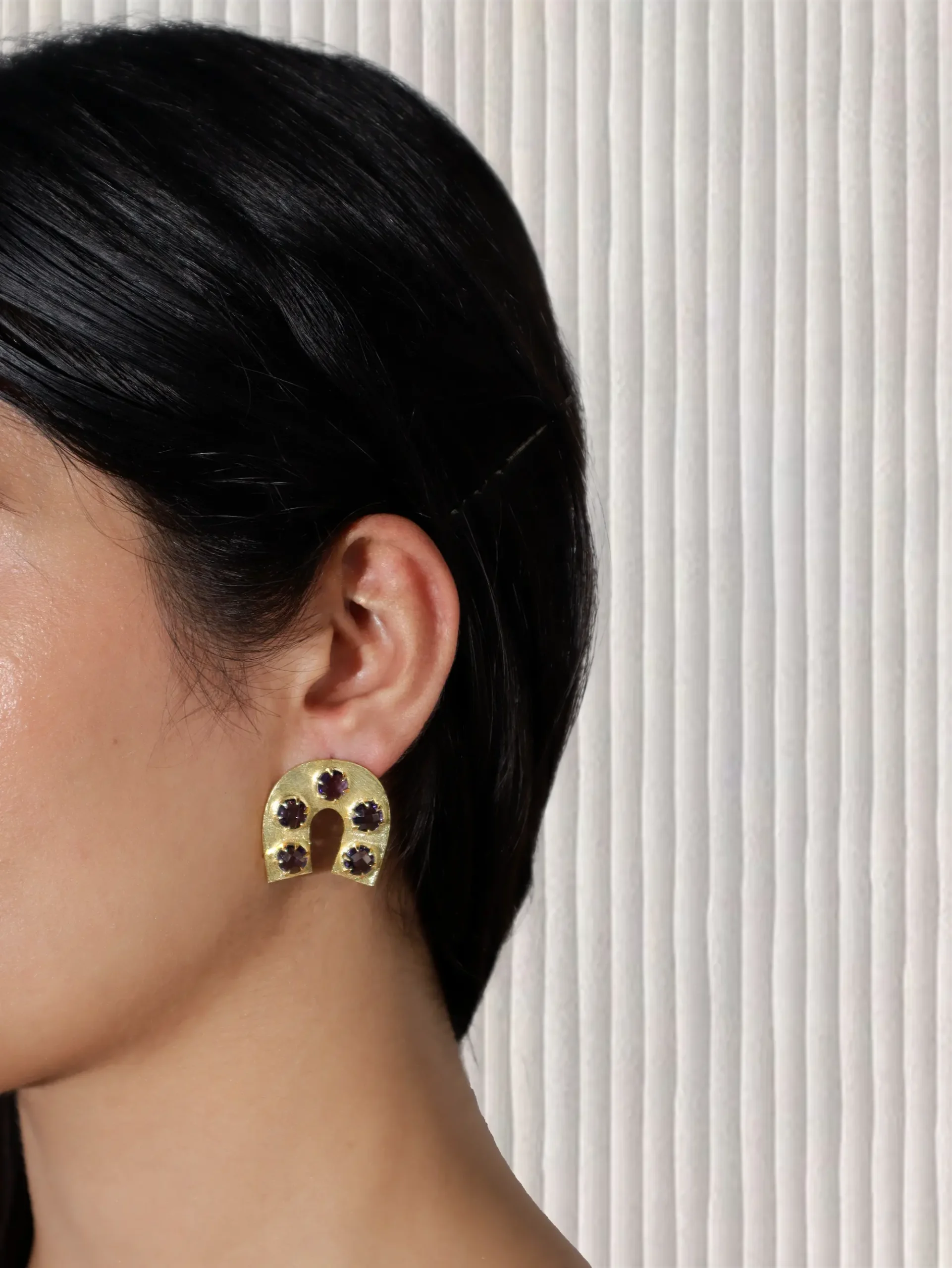 Horseshoe-shaped studs adorned with vibrant turquoise dots?quirky, charming, and full of character.
